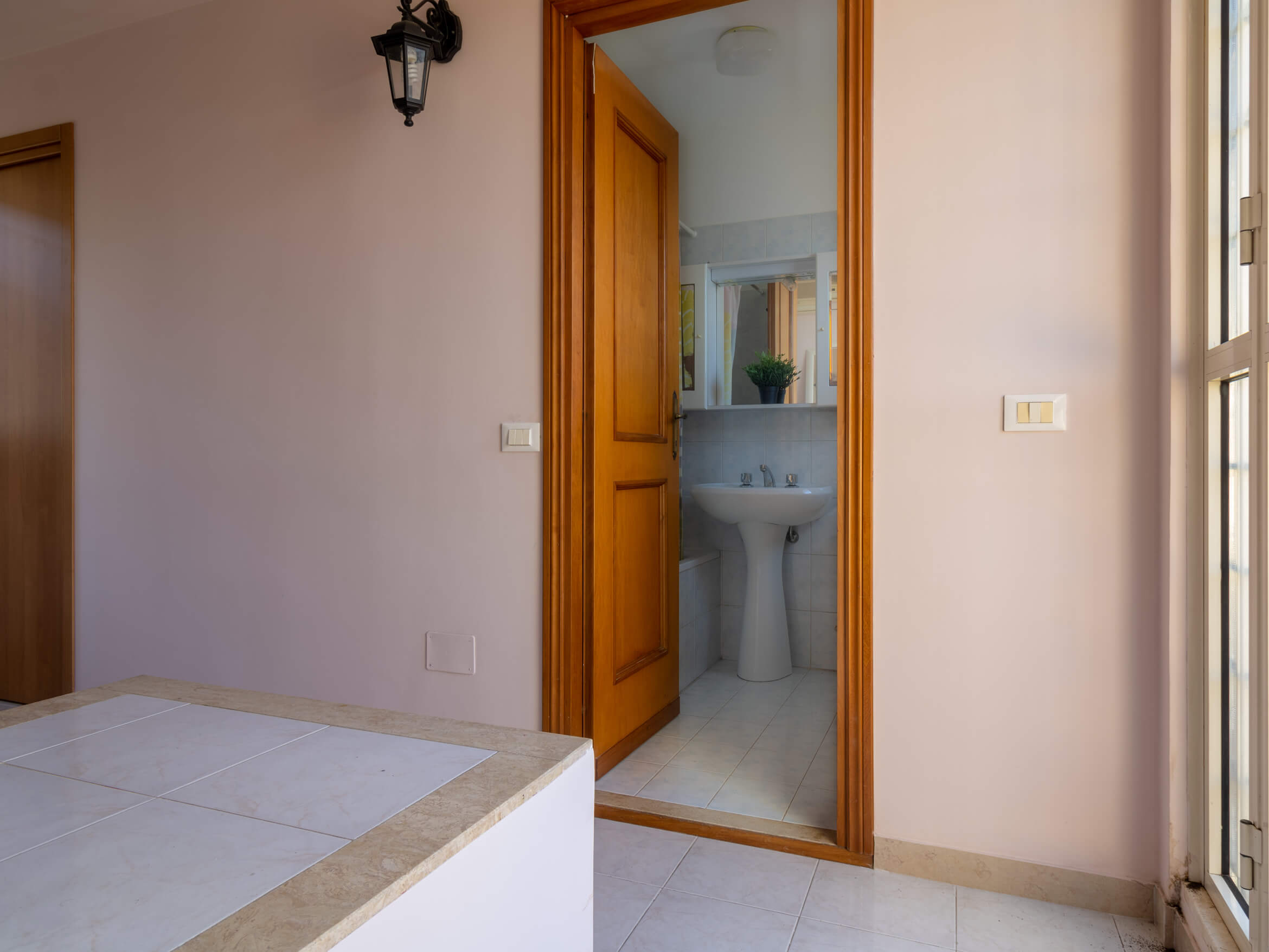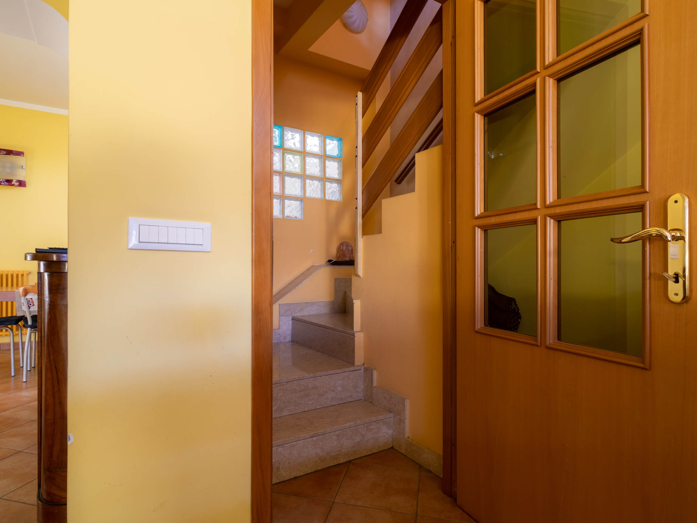 – piano seminterrato (completamente sbancato con affaccio da piano terra), composto da un’ampia sala hobby con camino, cucina abitabile, zona pranzo, servizio, terrazza (con splendida vista tramonto) e giardino.